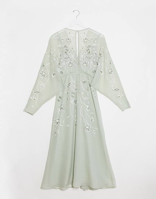 Asos Design Maternity Floral Embroidered Batwing Midi Dress In Mint Asos