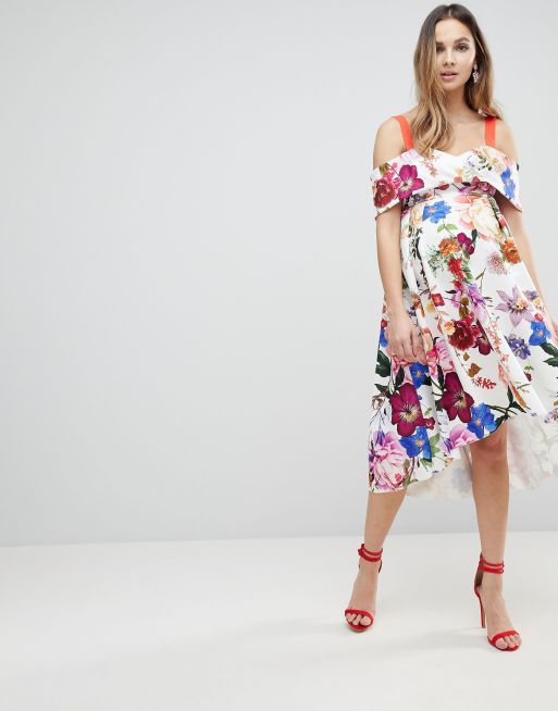 Asos Maternity Botanical Floral Cold Shoulder Midi Prom Dress Asos